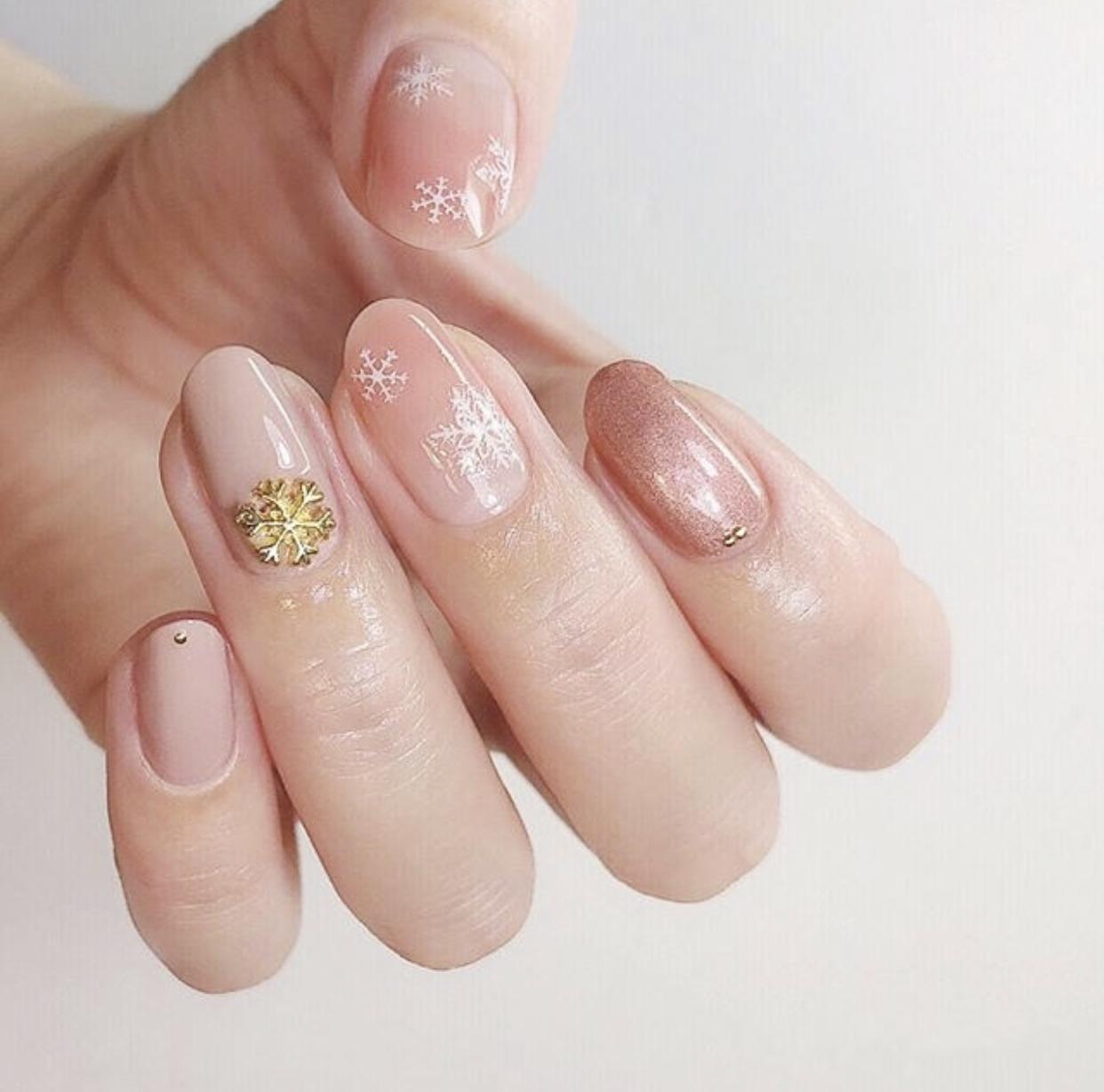 用粉色打造的渐变美甲,看起来格外温柔,加上精致的雪花造型,显得格外优雅浪漫。