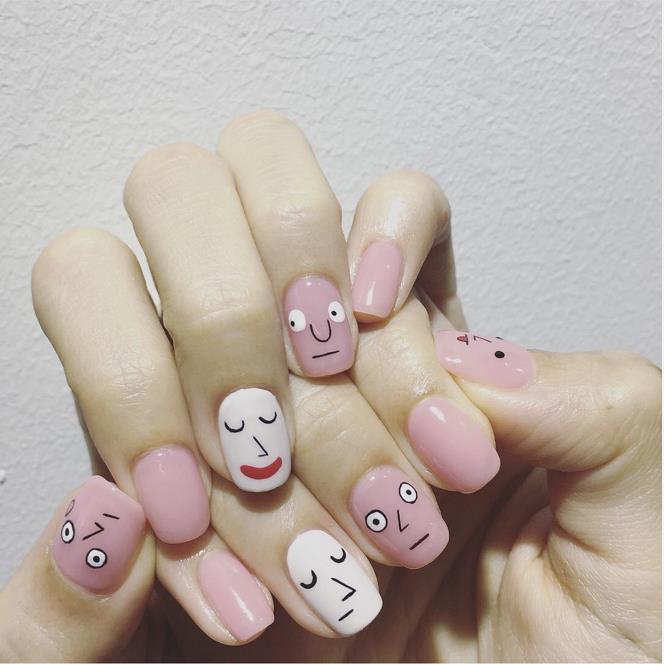 这样的表情包美甲,也是十分有趣味的,简约又很独特的表情彩绘,也是很有时髦感的,这种酷酷的潮流范,也会让你的指尖更加抢眼哦!