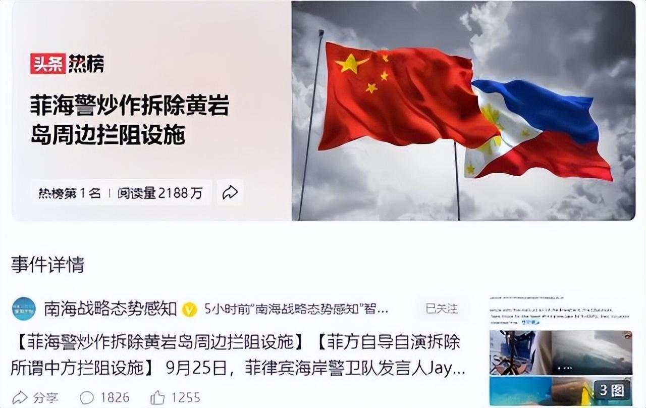 黄岩岛惊人事件!菲方自导自演拆除所谓中方拦阻设施!真是活久见