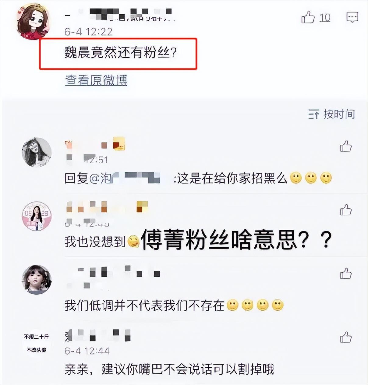 在这起抄袭事件中,魏晨应该是最惨的一个了,不仅自己作品被抄袭,而且还被傅菁的一些粉丝嘲讽辱骂,称他又老又糊,就是来蹭热度的,更是公然反问魏晨还有粉丝?不得不说,现在一些粉丝为了维护自家偶像,真是什么话都说得出来,这样的行为看似维护,实则却败坏艺人的路人缘。