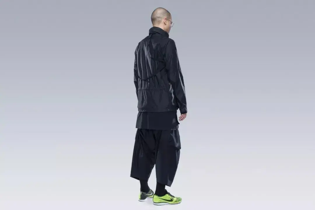 赛博朋克走向娱乐圈,在极简主义与色彩堆叠的时尚中独树一帜。借鉴了色彩充沛、神秘、黑暗这些元素,赛博朋克风格的时装常常有实用性强、防风、防水等优点。如品牌ACRONYM,其具有科技和未来感的设计,令他们的单品“一衣难求”。