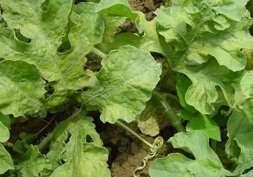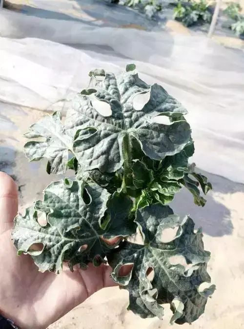 病害说明:西瓜病毒病主要有花叶病毒病、蕨叶病毒病及条斑病毒病等,花叶、蕨叶及条斑等病毒病,具有发病迅速、危害严重、传播快、防控难度高等特点。