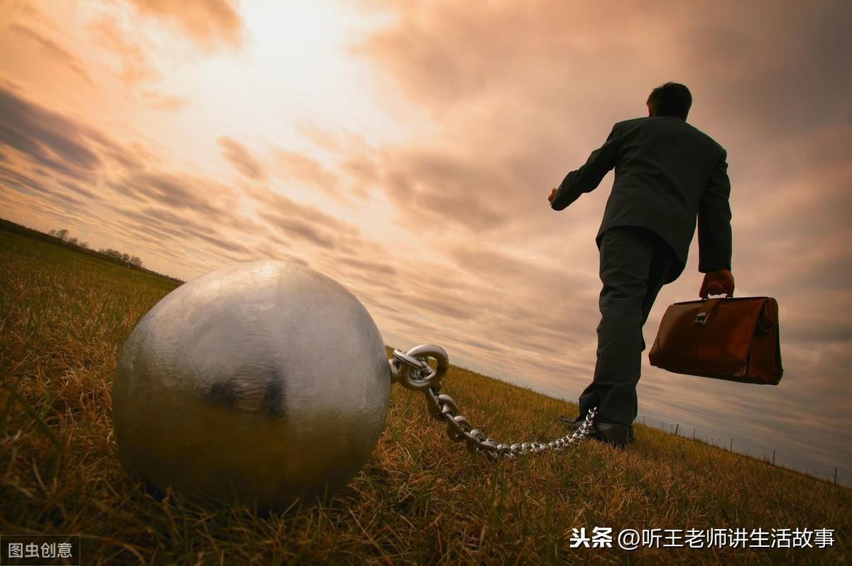 被铁球拖拽艰难前行