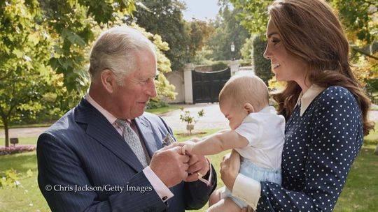 在这张可爱的照片中,查尔斯王子与他的孙子路易斯握手致意。图片来源:CHRIS JACKSON/GETTY