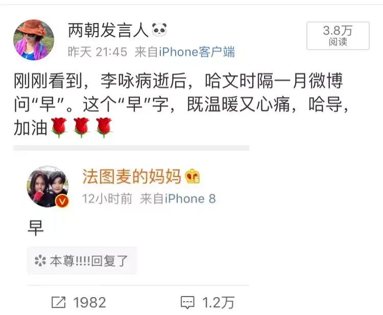 哈文首次微博问侯,令人欣喜又心酸