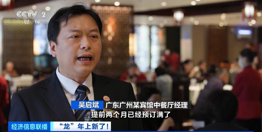 在广州的一家酒店,年夜饭的菜单有新意,头菜 " 龙腾四海一家亲 " 应节、寓意好,深受食客喜欢。套餐订单量居高不下,也让餐厅年夜饭早早订满。
