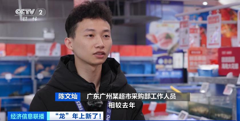 在水产交易市场,海鲜行情更是火爆。春节临近,每日交易量约 600 吨,特别是与 " 龙 " 相关商品,如龙虾、龙利鱼等需求更大,价格也小幅上涨,涨幅在 5% 到 10% 之间。