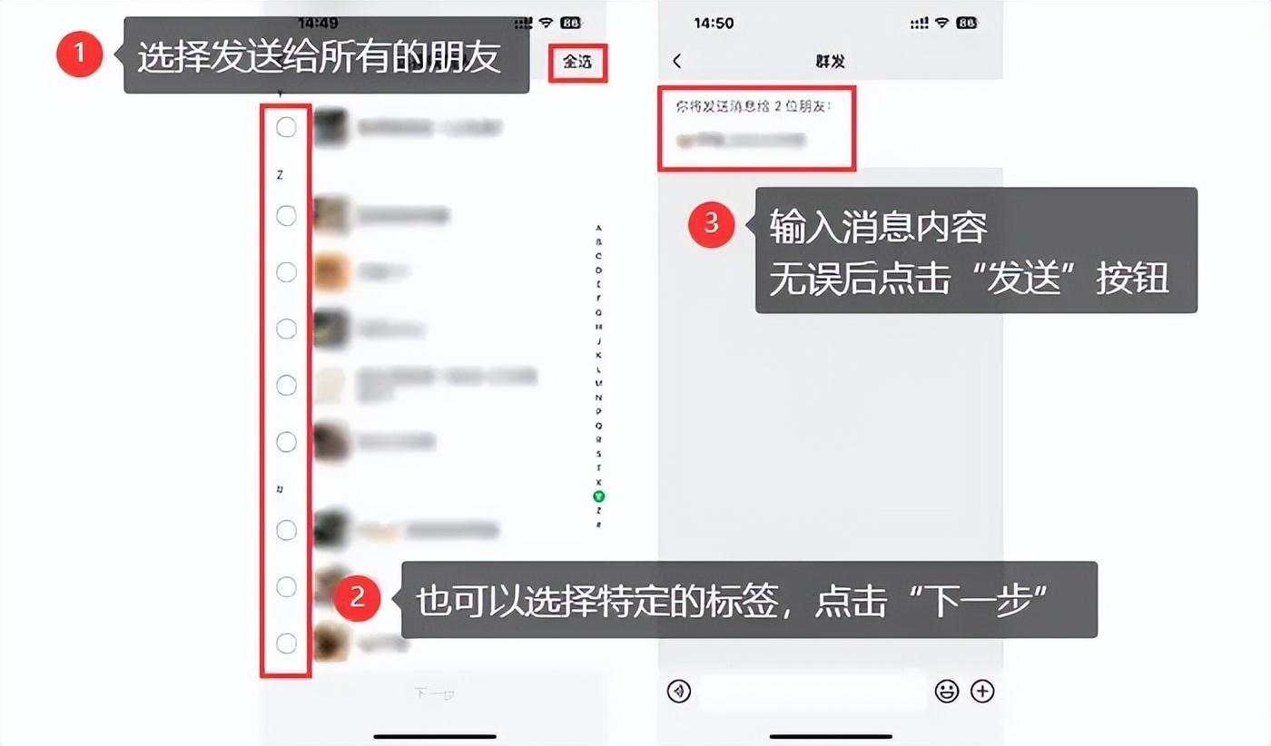 微信群发消息是一项方便快捷的功能,可以同时向多个好友或群组发送消息,节省逐个发送的时间和精力。无论是用于个人生活还是工作场景,都很实用。