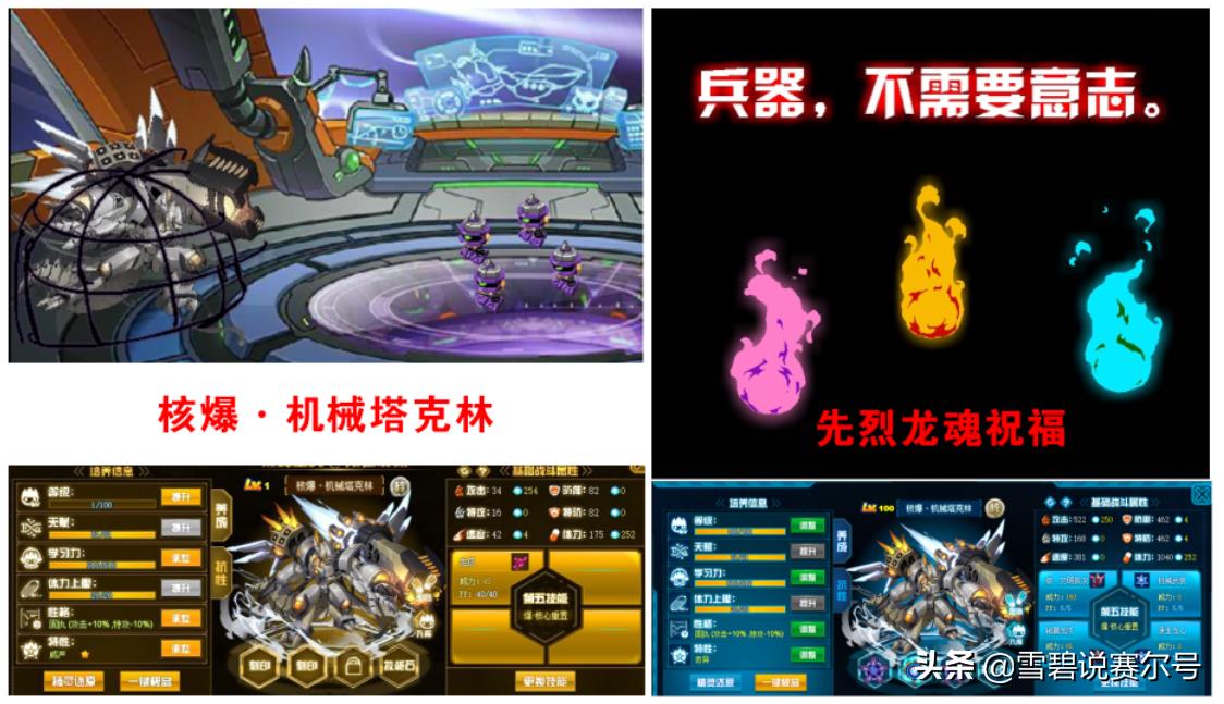 从上面,我们就要知道2014年机塔在超进化的时候,策划已经就把机塔从海盗手里夺了回来,让其有了自主意识。还有一个比较有意思的就是,超合金也是上线以后改的名字,它刚开始的名字叫“铁索·塔克林”,还有这个精灵魂印一开始有BUG,堪称当时R精灵的弟中弟。