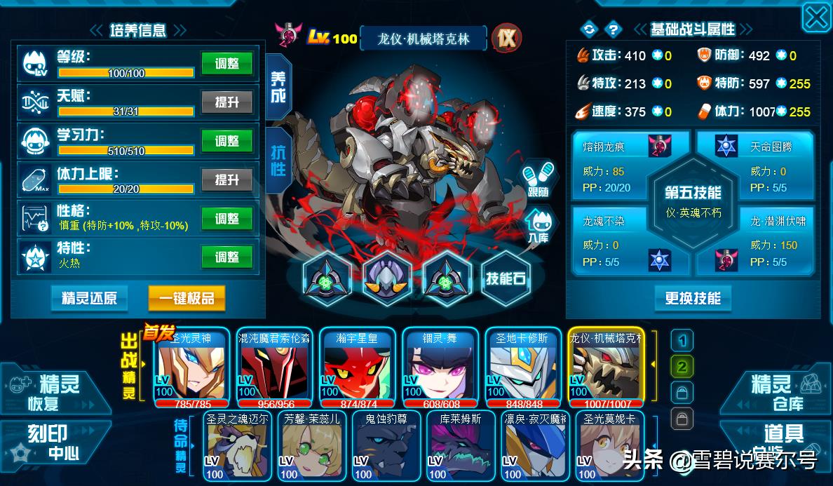 2.实力:这次的强化可以算的上是真正意义上的“绝对防御”,天命图腾的各种增益让这个精灵有了足够长期问鼎巅峰的实力,而且是百搭,可以配合大部分精灵来使用,让巅峰高级玩家又有了背包新成员。