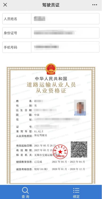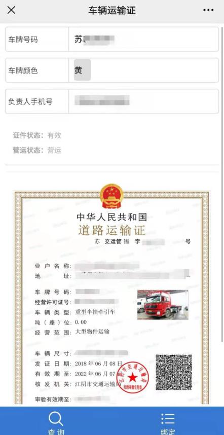 无锡地区的道路运输车辆和从业人员电子证件下发后可以通过微信公众号“无锡交通执法”,在“办业务”—“我的证件”模块中选择相应的证件类型进行查询。电子证件通过网络云储存实现了证件无纸化,方便共享查询。