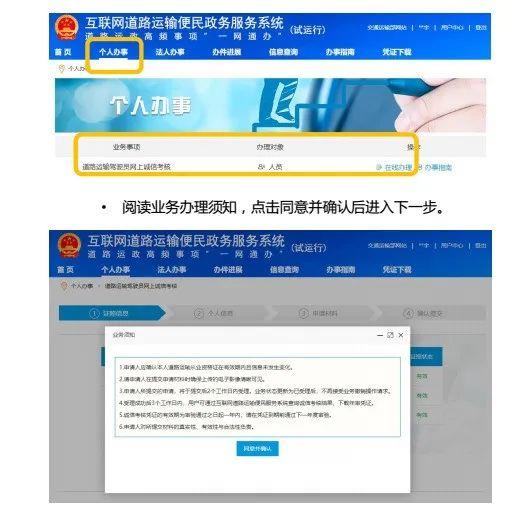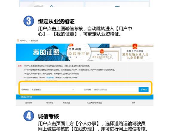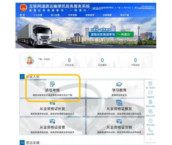以道路运输驾驶员,网上诚信考核为例,具体操作流程如下:
