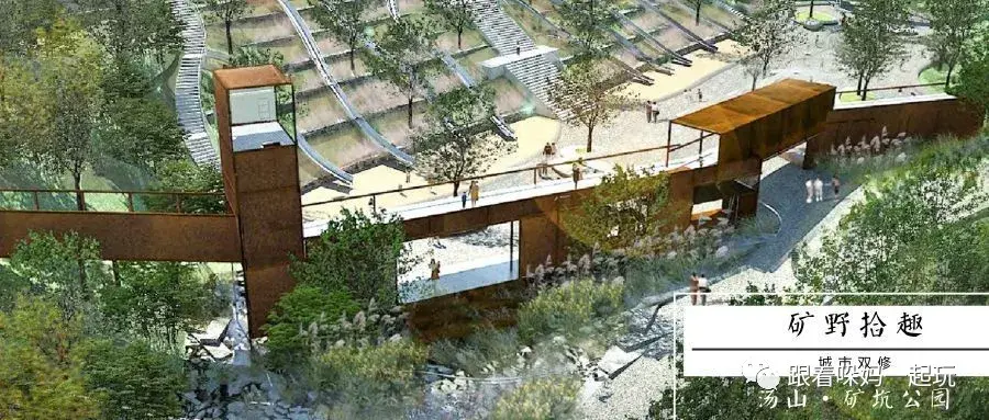 其景观设计以现状地形地貌为基础,深耕历史人文与矿坑文化,充分利用区域内现有植被与矿山资源,通过湿地、草甸、湖区等景观元素对其进行生态系统恢复、景观风貌恢复,通过这一系列生态修复工程,创建SITES认证及国家城市双修试点,以作为全国矿坑修复的示范性案例。