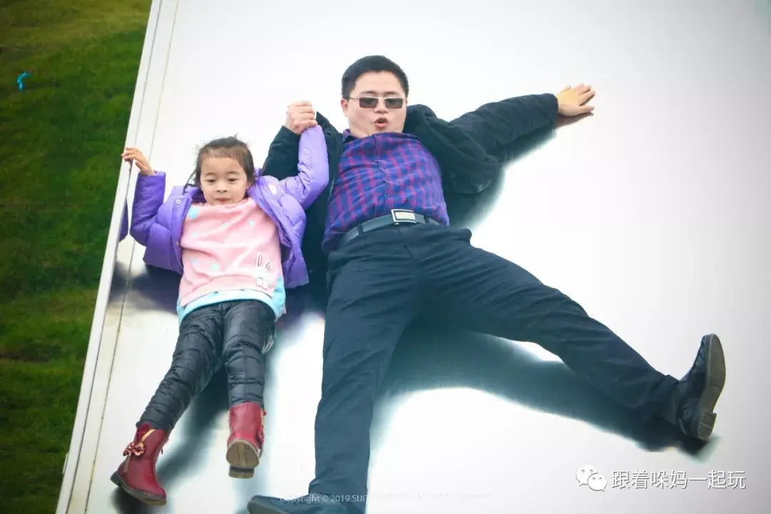 看这个爸爸,滑梯上的销魂POSE!哈哈......