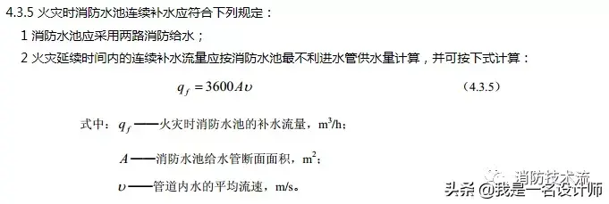 算完消防用水量,并没有结束,还看是否满足补水条件。依据《消防给水及消火栓系统技术规范》的规定,该建筑符合补水条件(两路消防供水),可以减去火灾延续时间内的补水。