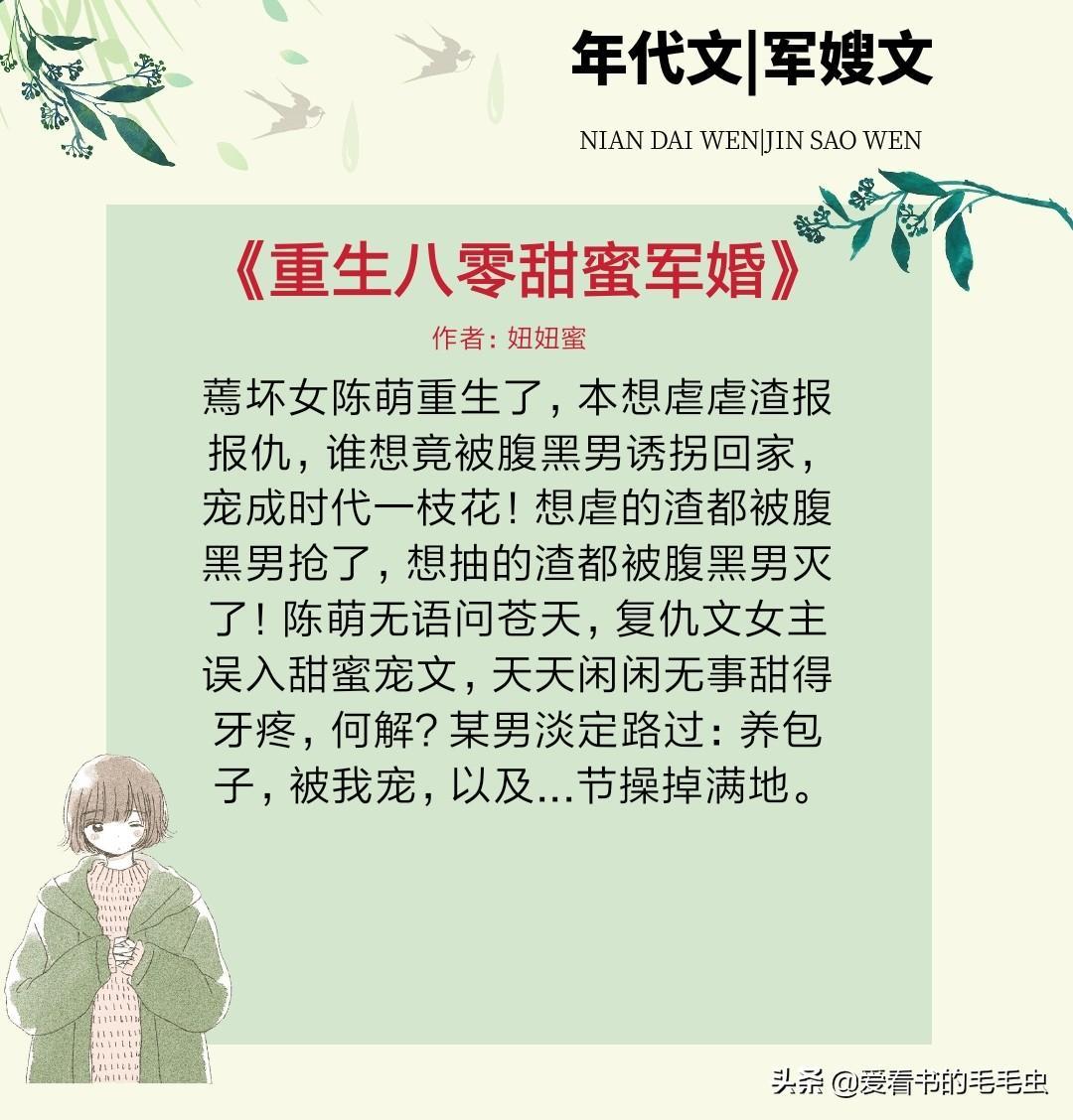 3,书名:《重生八零甜蜜军婚》 又名:《重生八零甜蜜蜜》 作者:妞妞蜜