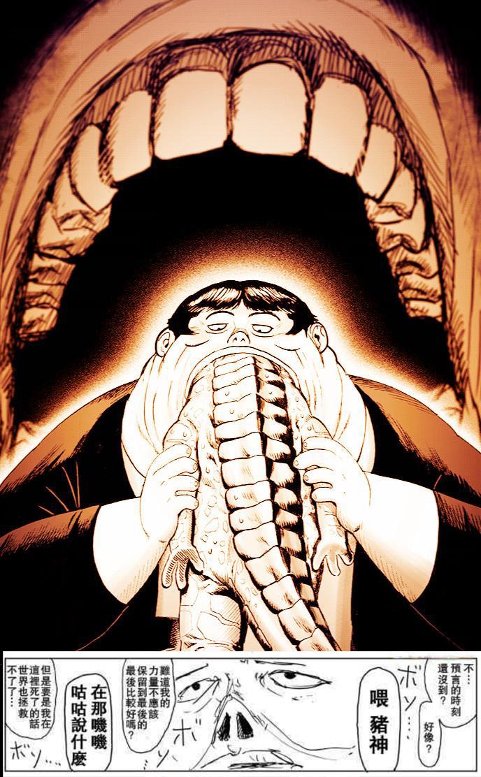 猪神喜欢自言自语,这一点相信大家都有察觉。原作漫画显示,猪神似乎是因为和体内某个生物对话而自言自语,而这个神秘生物实力极强,似乎有和众多龙级怪人同时叫板的能力。