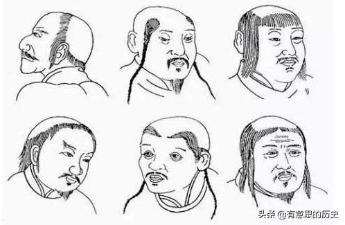 这段历史记载是不是很形象?直白说是将头顶的头发剔除,只留两鬓或前额少量的头发结成辫子。总之与中原差距太大,欣赏不来[捂脸]