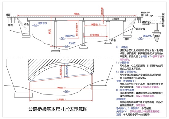 桥下净空高度:设计洪水位、计算通航水位至桥跨最下缘之间距离。