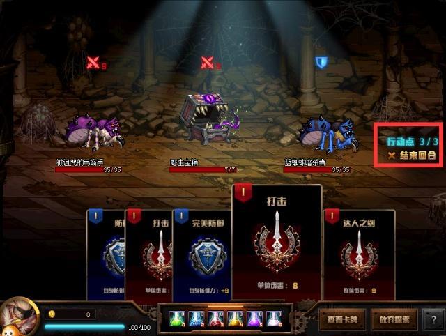 每张卡牌的属性都不一样,有群伤的,也有打单怪的,推荐先用群伤的,然后再用打单个的,如果自己血量不够的时候,在下面中间还有加血的药水,当轮到玩家出手的时候就能用了,当然这个是要购买的,下面会说到,当然每一个回合结束之后,玩家的卡牌都会重置,所以不用担心没牌出。