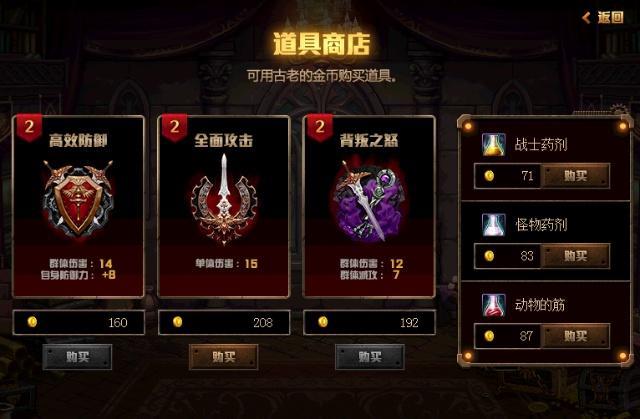 每次打完一定的怪物之后,都会获得一定的金币,在血条的左边就能看到,在打完怪之后会弹出一个奖励的界面。这时候玩家就可以购买商店里的东西了,比如高攻击的卡牌,还有加血的药,除了加血,卡牌还能强化,类似原先伤害是8点强化之后就是12。
