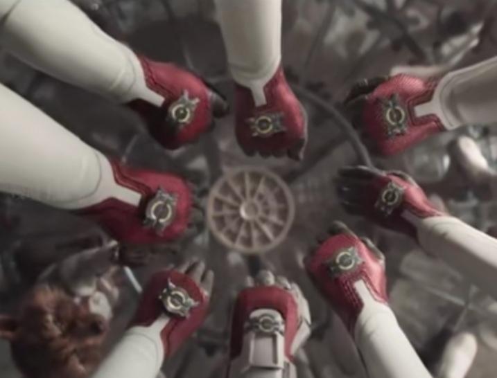 在众人准备穿越过去时集结的手势下面有类似于钢铁侠初代反应炉的图形,