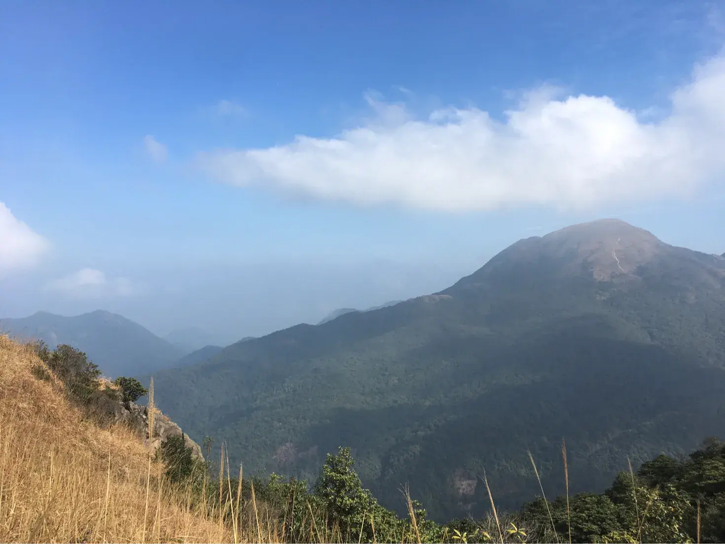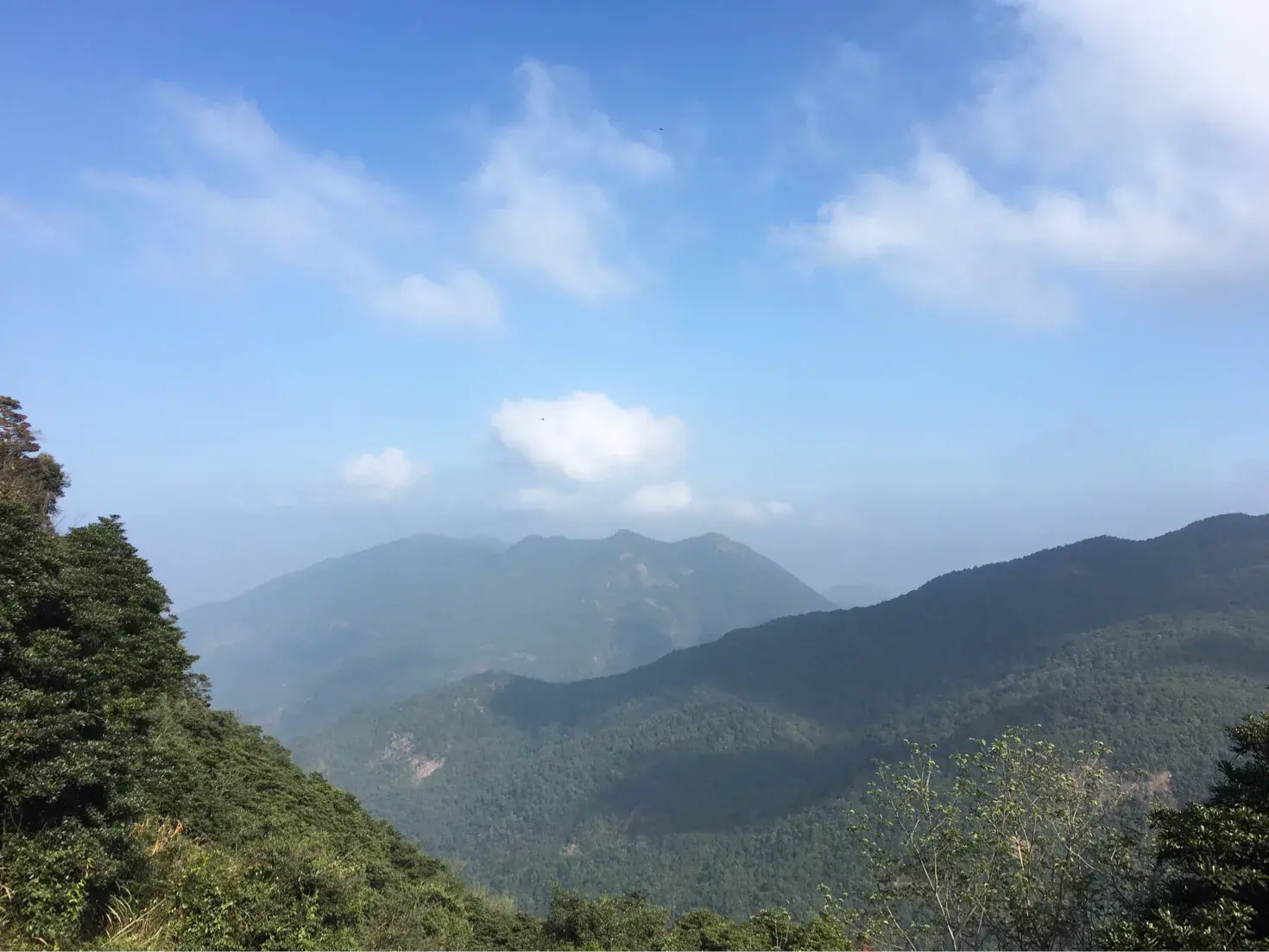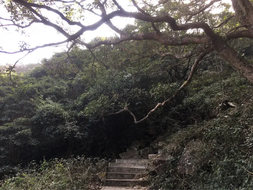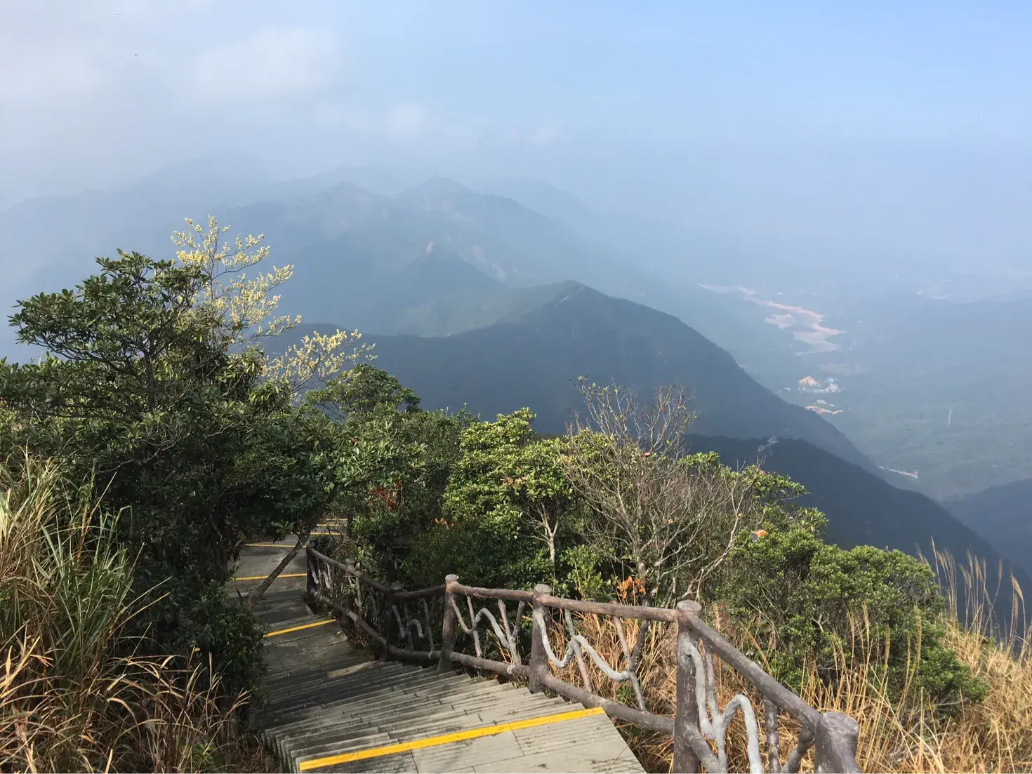 大概走了一个小时就到海拔700左右的一个亭,才能看到对面的一点点山,因为一路上来都被两旁的树挡住了。