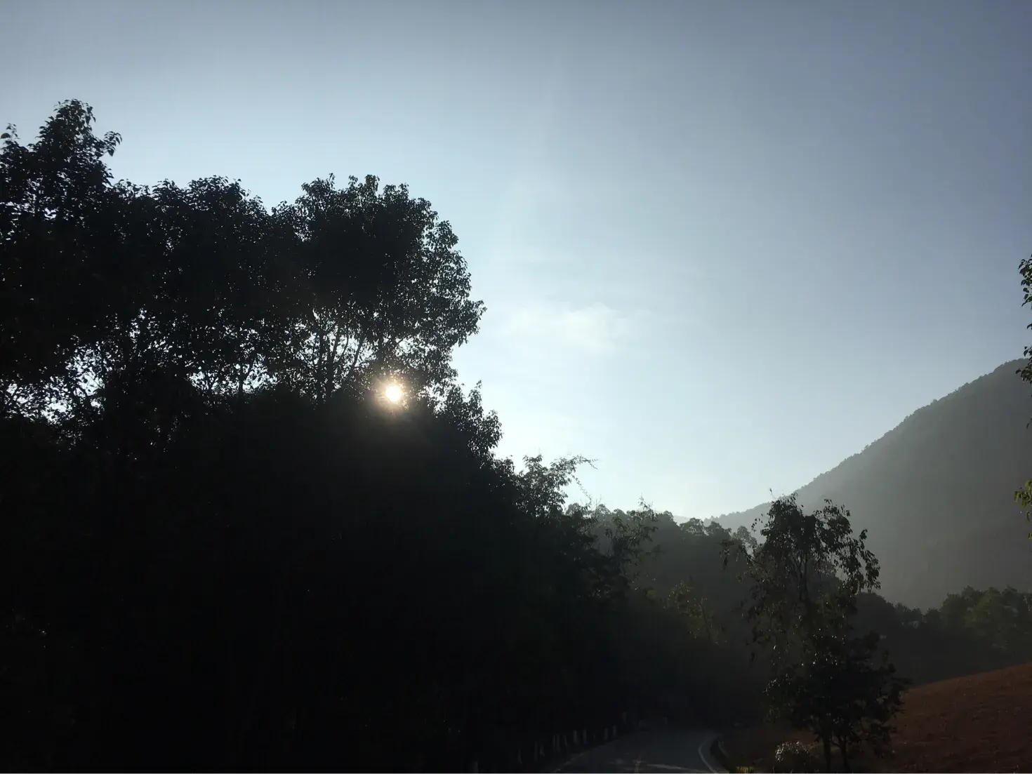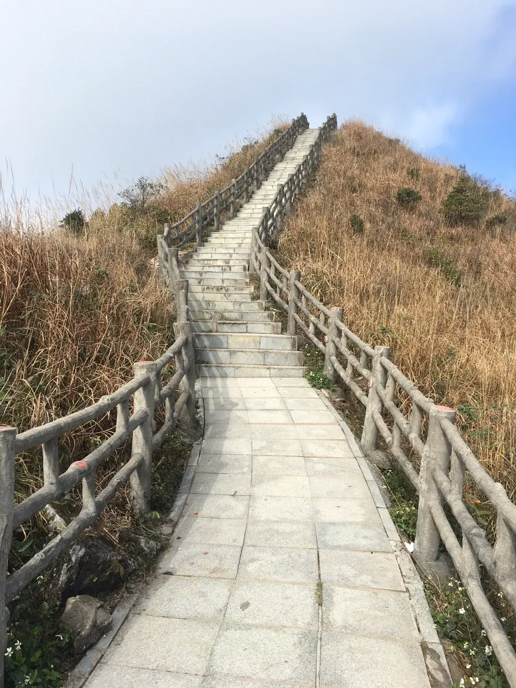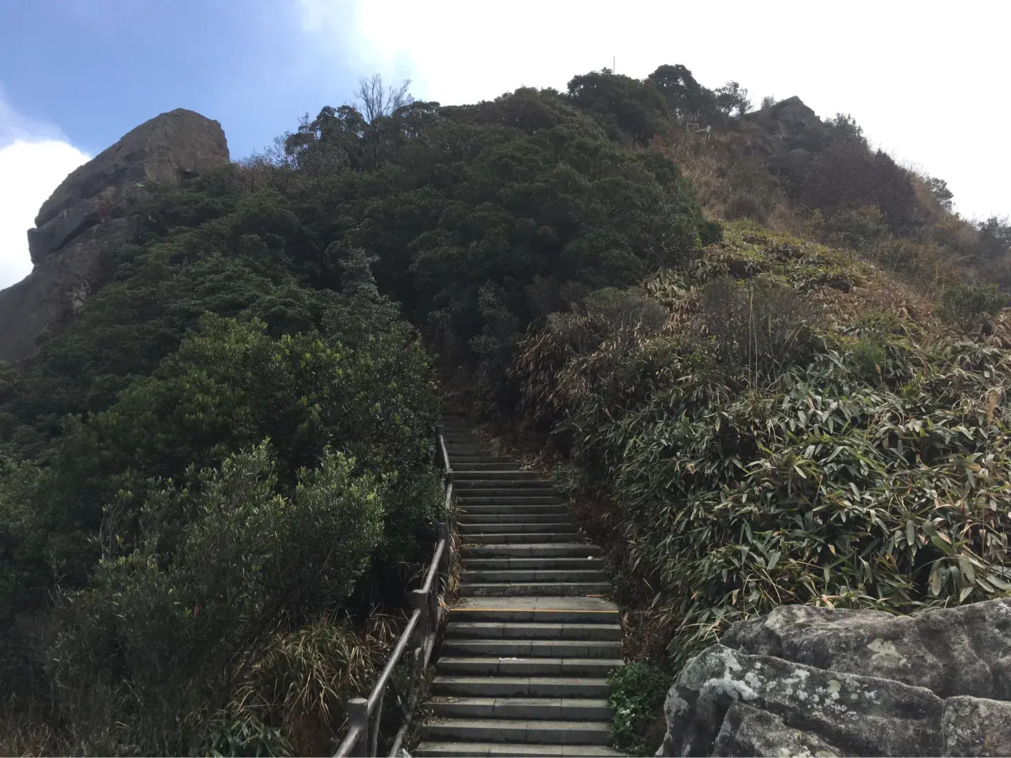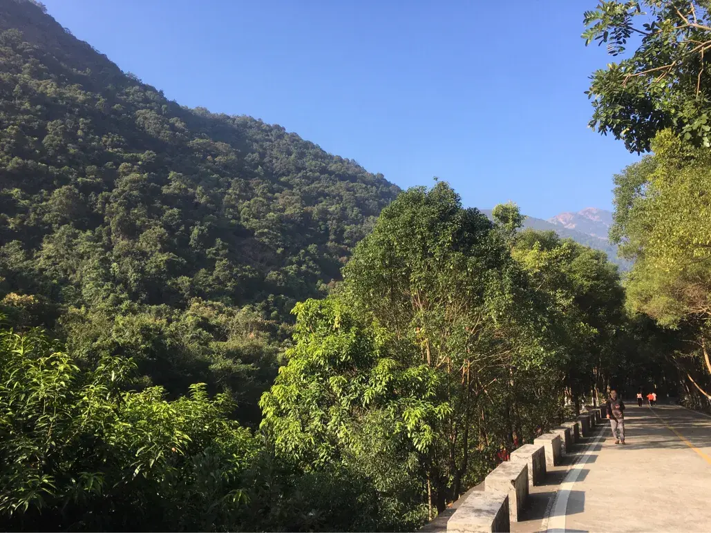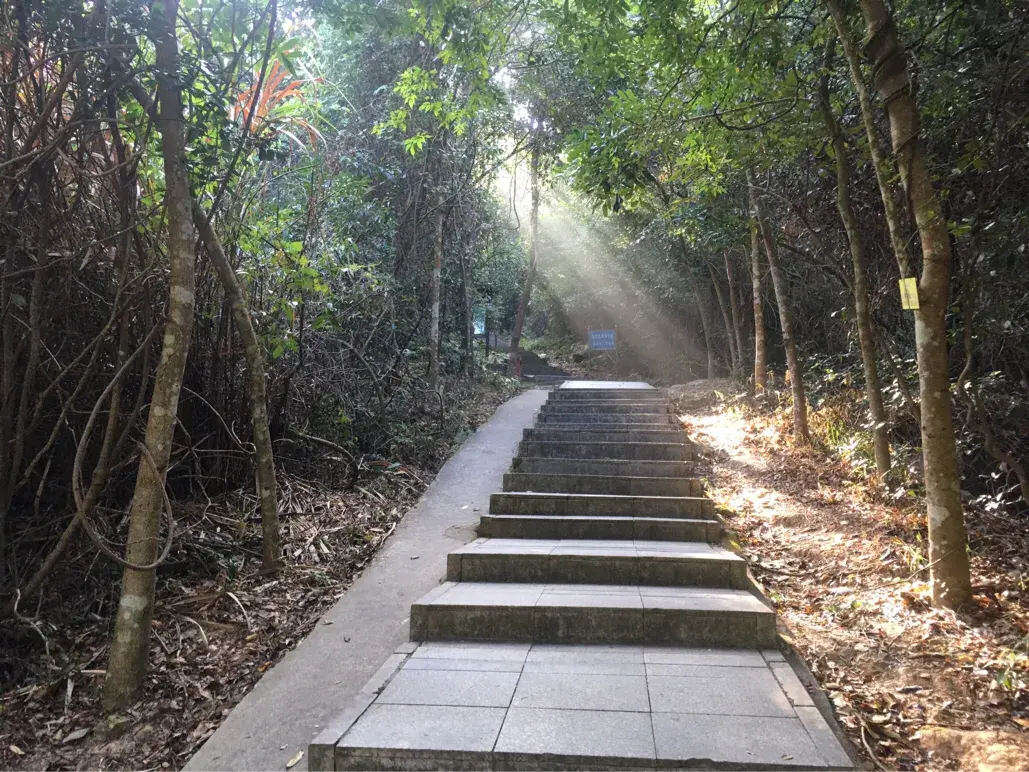 大概走了一个小时就到海拔700左右的一个亭,才能看到对面的一点点山,因为一路上来都被两旁的树挡住了。