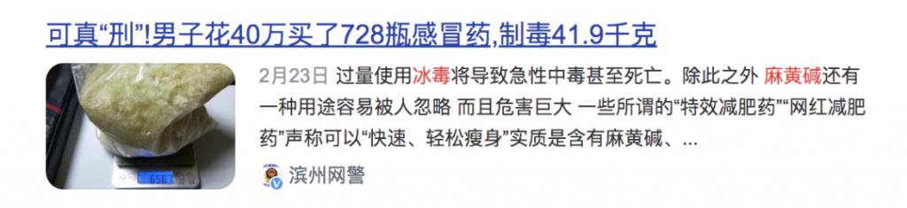 近几年麻黄碱类复方制剂被用于制毒的报道。