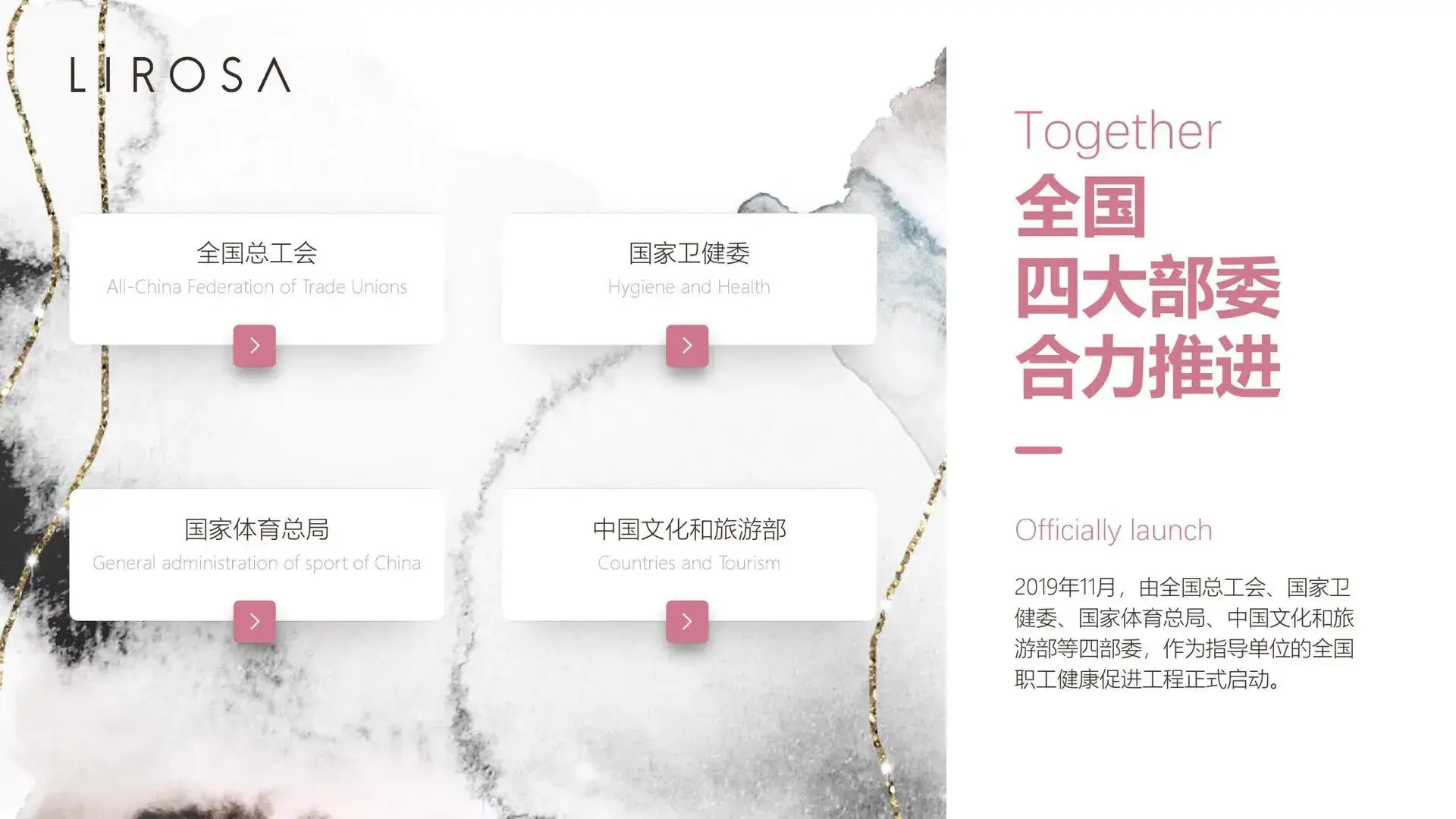 LIROSA原点水霜中国区负责人介绍,2020年将投放大量的广告费扩大LIROSA的影响力,聘请专业的IP打造团队为品牌优质代理提供培训扶持,与国家四大部委(全国总工会、国家卫健委、国家体育总局、中国文化和旅游部)合力推进品牌发展,2020年的销售业绩目标翻两番。