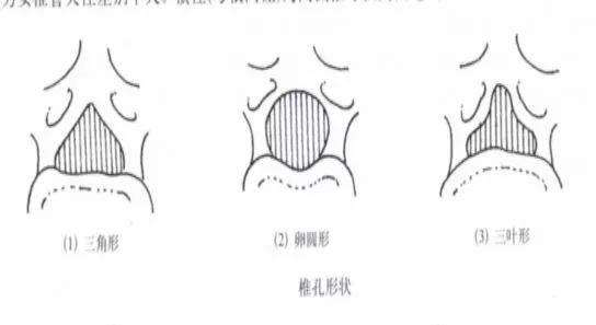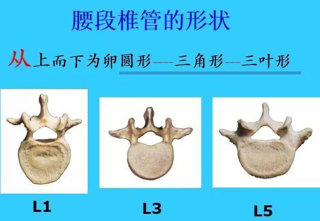 椎孔从上位椎骨向下呈卵圆状、三角形、三叶状。