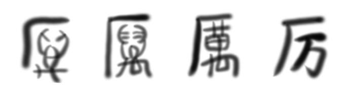 厉,厂+萬。厂:本身的先天缺陷;萬:向四周张牙舞爪的;故,厉:极其恶劣的环境,必须张牙舞爪才能生存。引申厉害,厉兵秣马。
