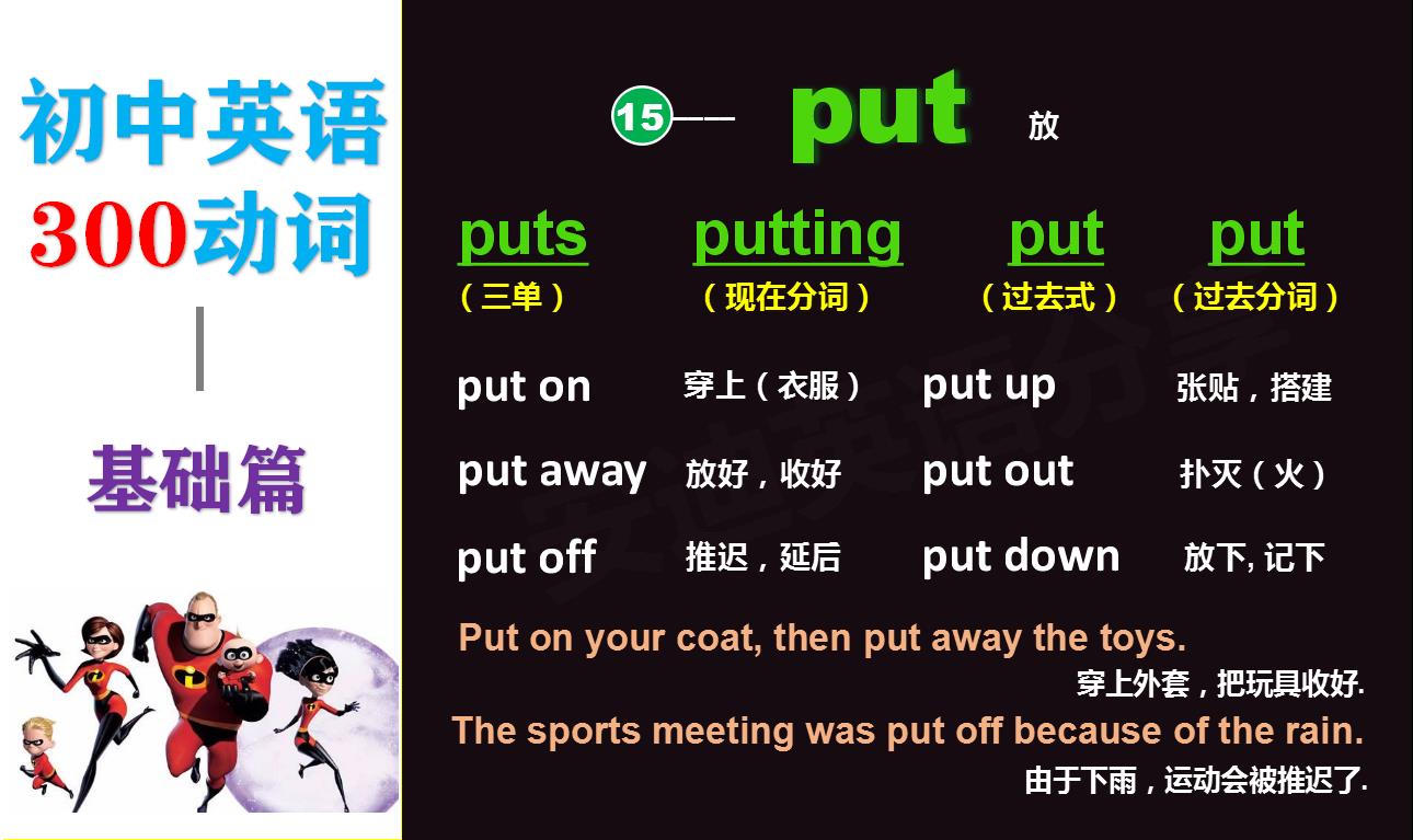 初中英语动词13讲:put 的 6 个必会短语(中考重点)