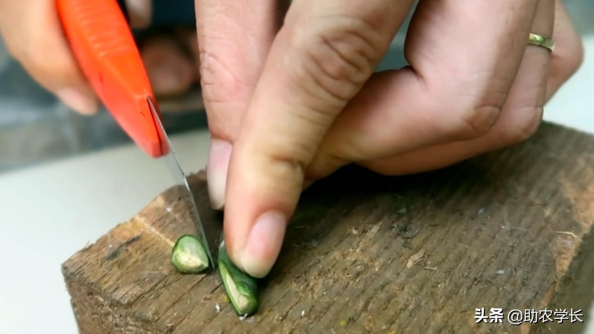把枝条的底部这里用刀,切成45度斜角,这样做可以增加对土壤的接触面积。