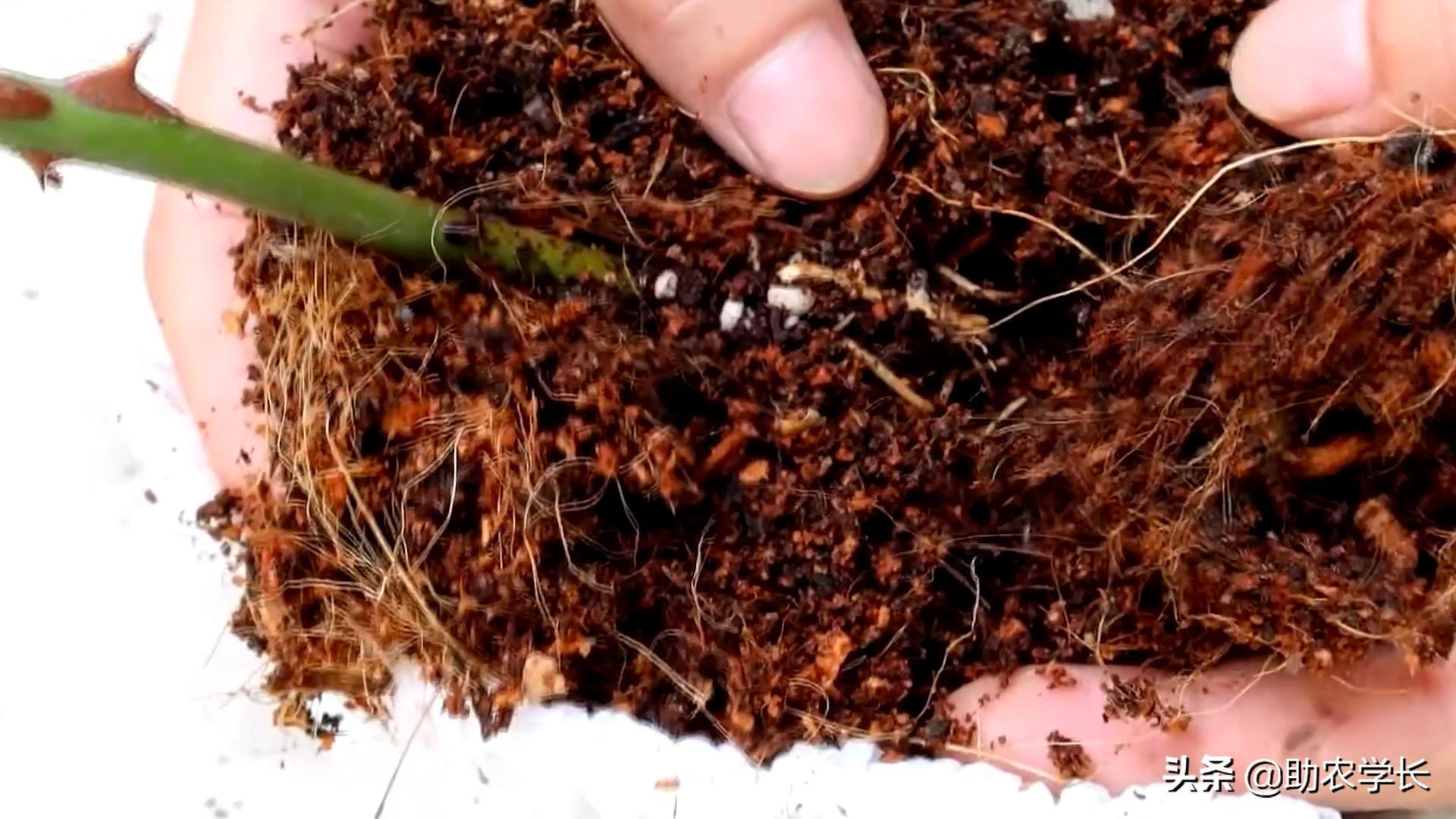 扦插所需介质,最好是用珍珠岩、泥炭、椰糠、混合起来使用,这样的配土方式,通风透气,既能保持土壤湿度,又不积水,而且还有点肥效,这样才有助于生根。