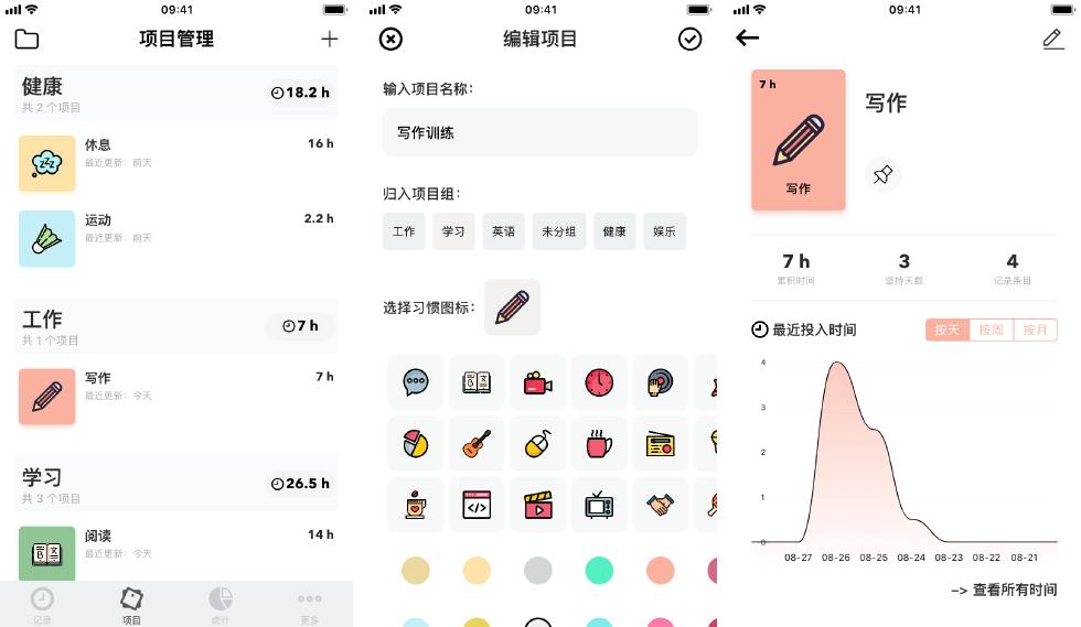 通过这款软件,可以看到自己在某件事情上花费的时长,也会透过时间看到自己的成长。