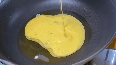 3、 鸡蛋液炒成鸡蛋碎