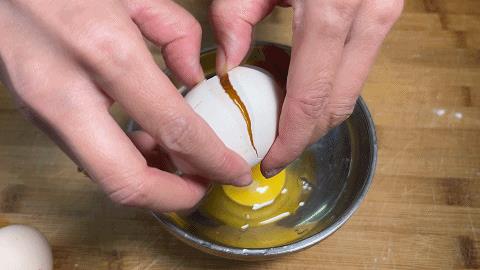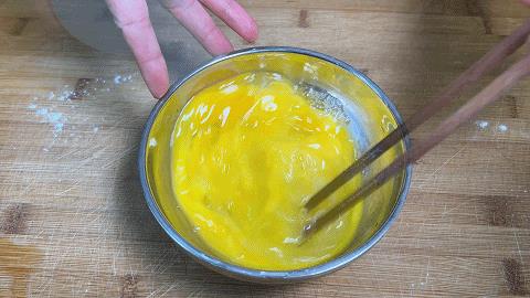 3. 在一个碗中打入3个鸡蛋,用筷子充分搅散