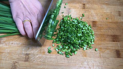 2、 韭菜择洗干净,切去根部然后切成小细段