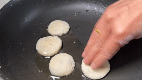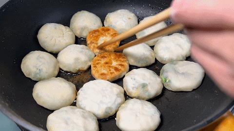 17. 全部放进去,小火慢煎,3分钟左右煎至金黄后翻面