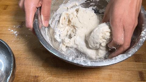1、 用清水和面,搅成没有干面粉的面絮,用手揉成面团,醒发20分钟