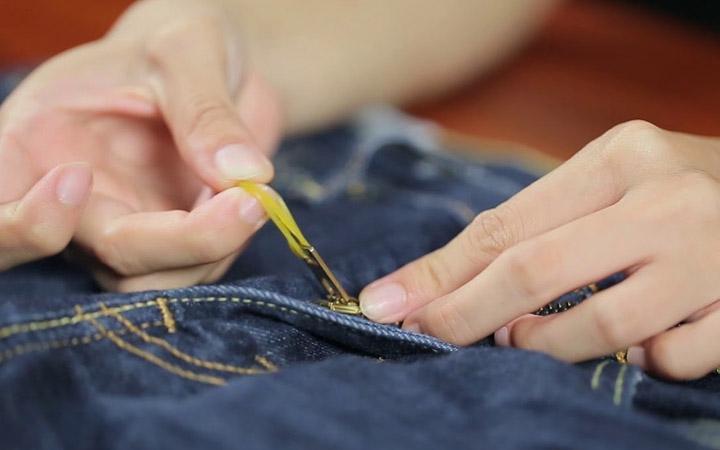 如果这在公共场合发生,尴尬是无法忍受的,要解决这个问题,拿一条橡皮筋,把它插入拉链标签曾经存在的地方,用它来拉拉链,直到你得到一条替换的牛仔裤。