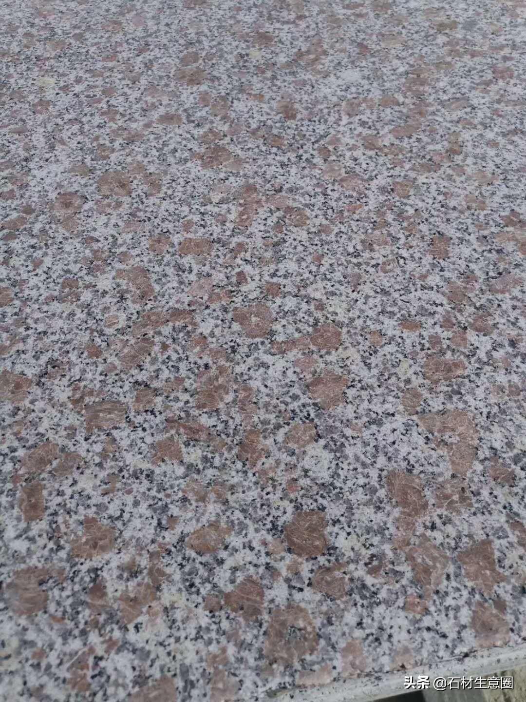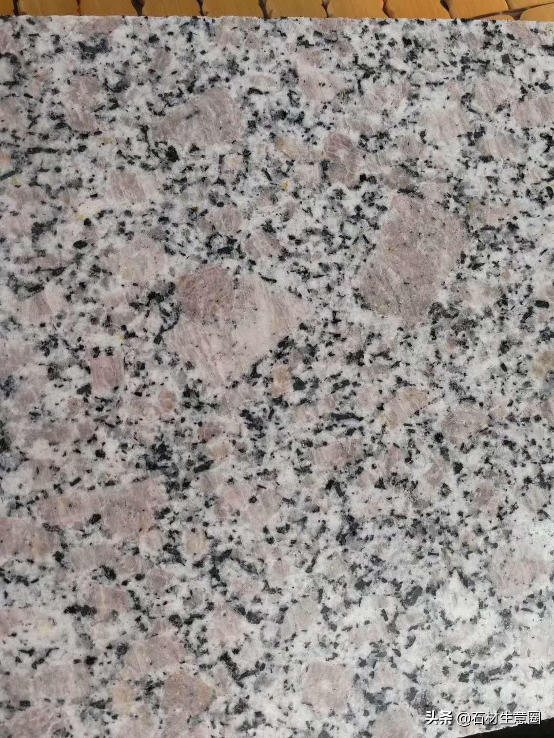 【石材特点】:底色呈白色、黑点、粉红晶体均匀散布。花色均匀,石质坚硬耐风化,色调属于中灰,比较明亮。