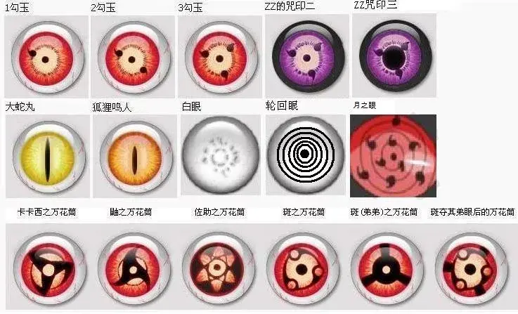 白眼大筒木辉夜大筒木羽村日向一族大筒木桃式大筒木金式[2]移植者:青(移植一只右眼)八卦掌点穴可360度视角大范围透视(看到的景象完全是黑白),看到敌人的查克拉