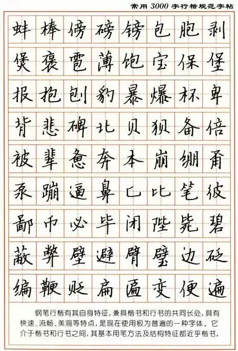 硬笔书法欣赏:行楷钢笔字帖作品常用3000字