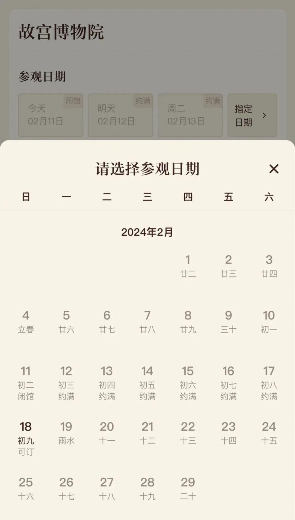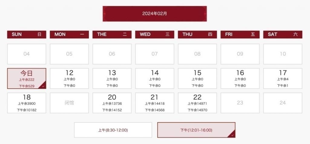 国家博物馆预约服务系统显示,当前至初八(2 月 17 日)的门票已基本约满。