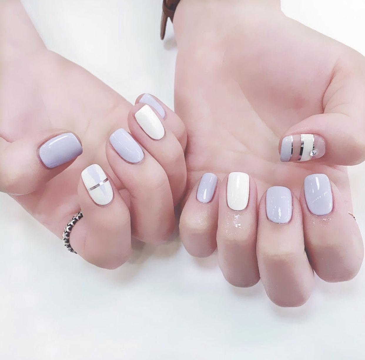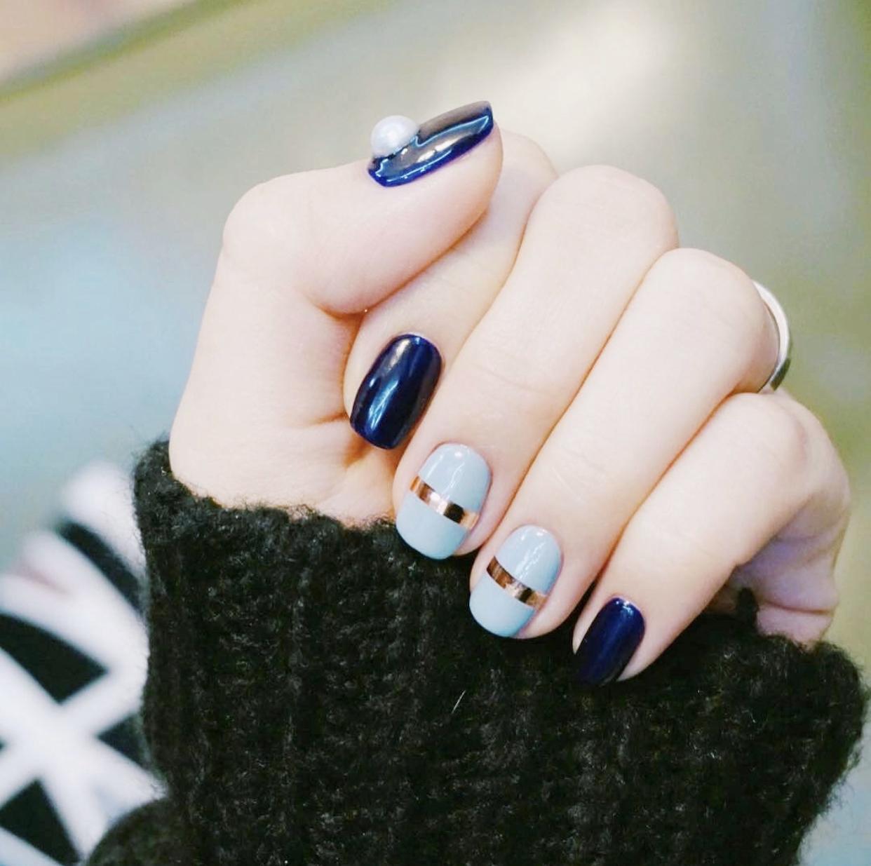 镜面拼接美甲,用普通的颜色和银色的镜面质感进行拼接,会在视觉上形成明显的对比,碰撞出了独特的时尚感,同样是简约的款式,却有着非常抢眼的亮点哦!