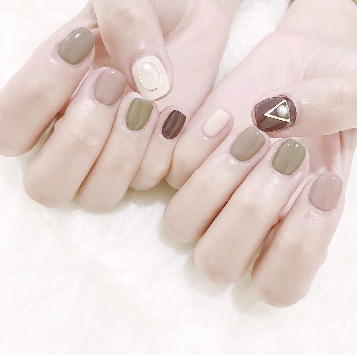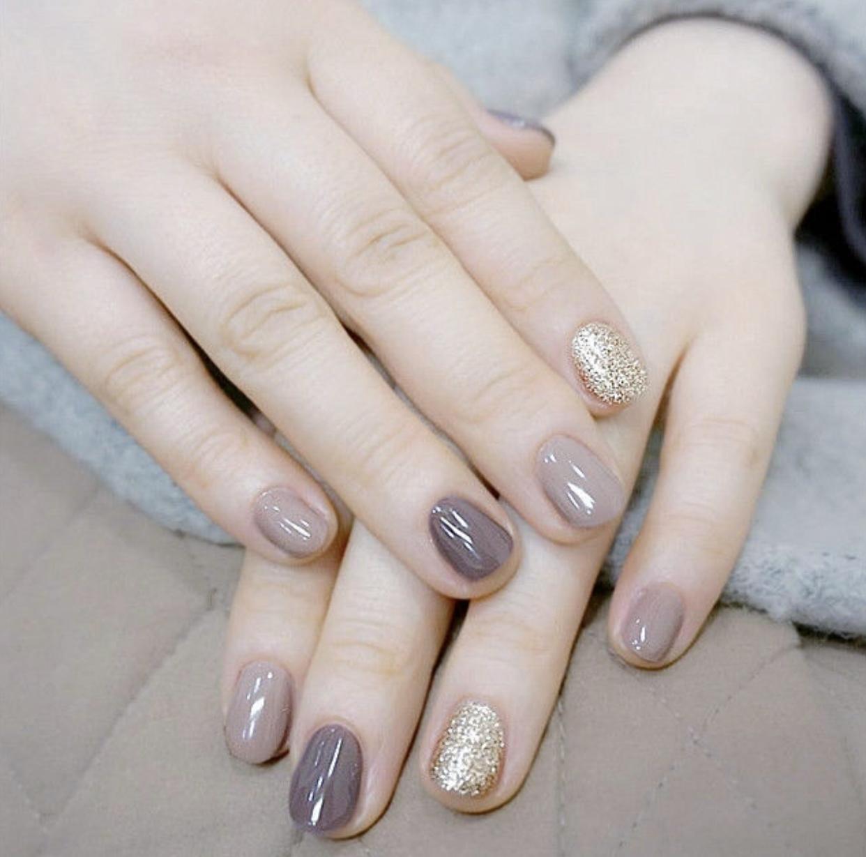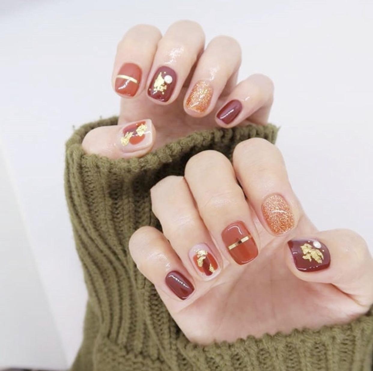 冬天选用棕色系和一些暖色调,会让指尖更有温暖的视觉效果,用棕色打造的格纹美甲,会显得格外有气质,搭配纯色美甲,会让指尖看起来更有时髦范哦!
