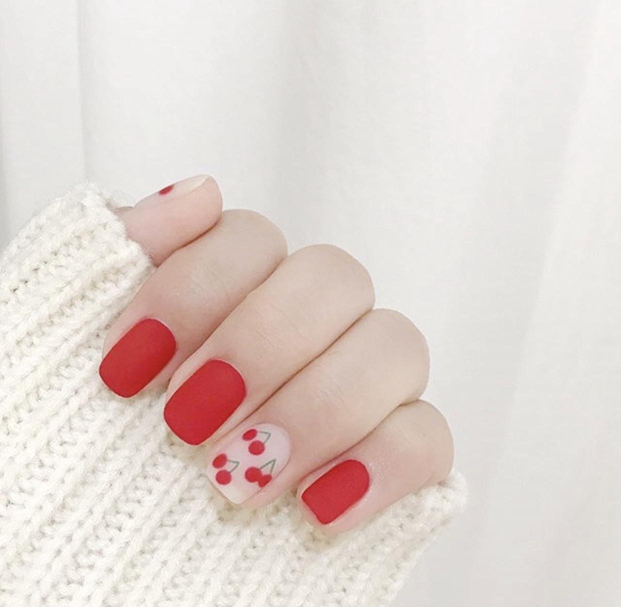 纯色美甲是最最基础的款式,做在干练的短甲上,会更显时髦气质哦~尤其是磨砂质感的纯色美甲,短甲可以更好地呈现出那种高级感,在个别甲面上加上简单的装饰,简约又很有亮点,不管是学生党还是上班族,都很适合哦~