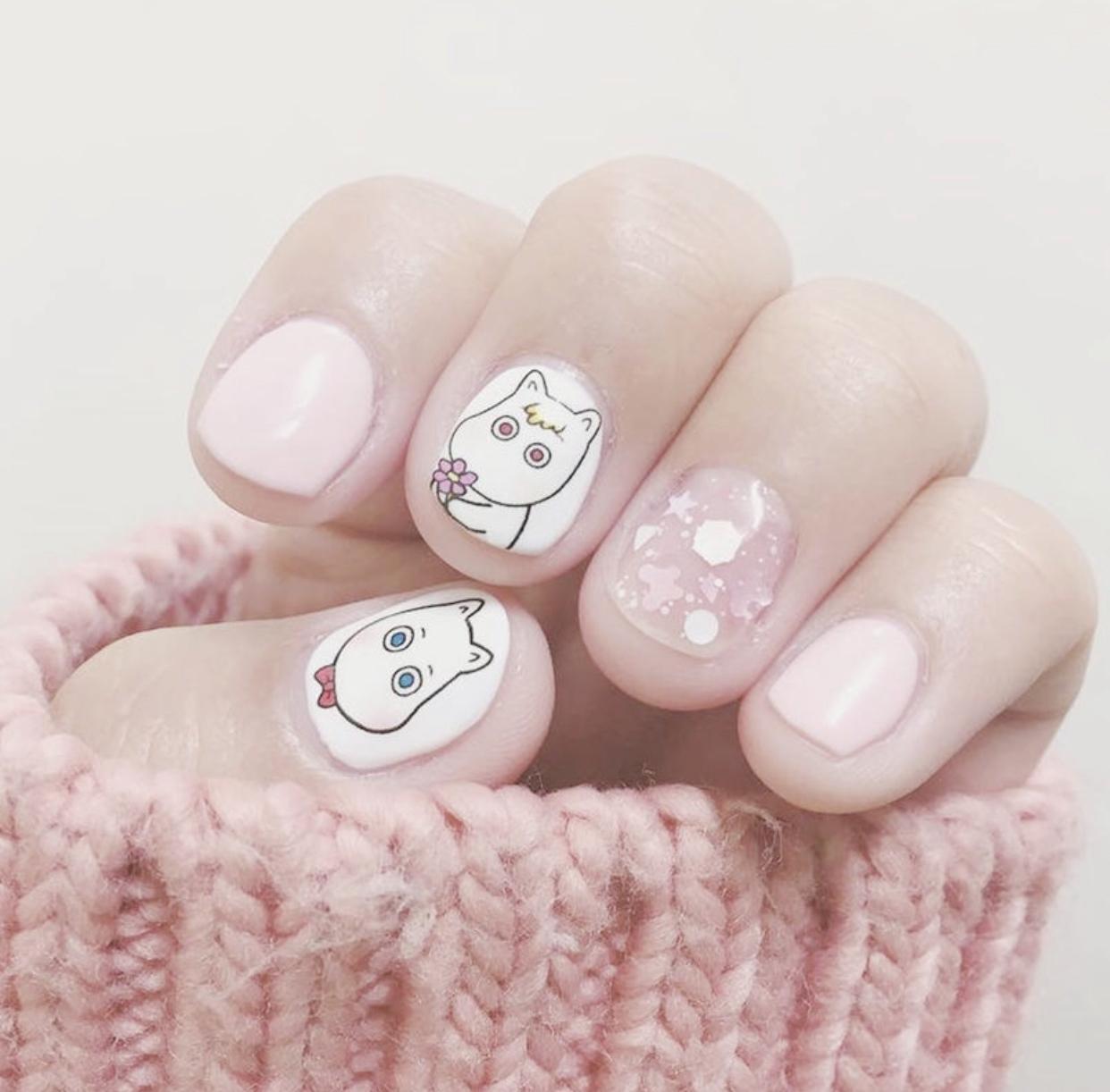 除了一些一本正经靠气质取胜的美甲外,可爱型的美甲,也是俘获了很多小仙女的青睐,像是在指尖画上可爱的卡通表情,或是加上一些活泼的颜色,都会让指尖显得格外轻松活泼。